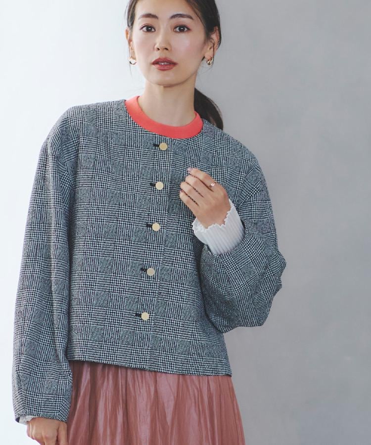 【着映え◎/アームホールゆったり】グレンチェックジャコット