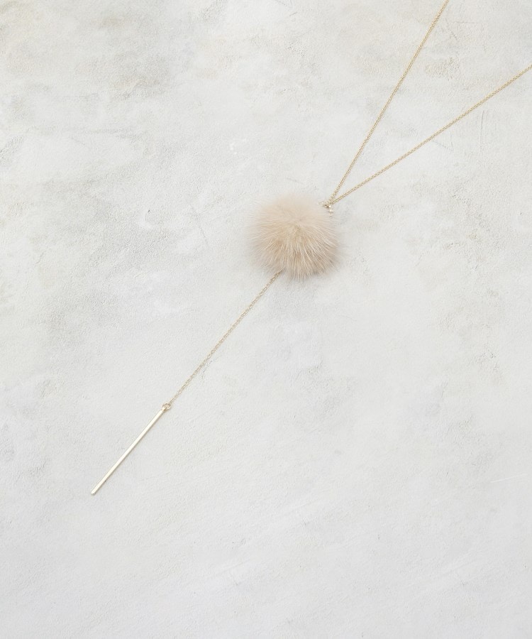 ミンクファーがどんなコーディネートも引き立てるネックレス【デザイン】ミンクファーをポイントにしたスライド式ネックレス。長さ調節で表情を変えられます。【着こなしポイント】シンプルなニットや白シャツの首元に添え、短めは上品、長めは抜け感のある演出に。※照明の関係により、実際よりも色味が違って見える場合があります。また、パソコン・スマートフォンなどの環境により、若干製品と画像のカラーが異なる場合もございます。