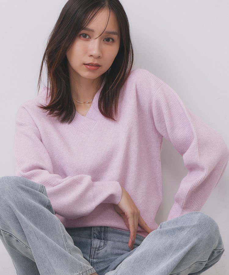 片畦Vネックボクシーパフニット【洗濯機OK】