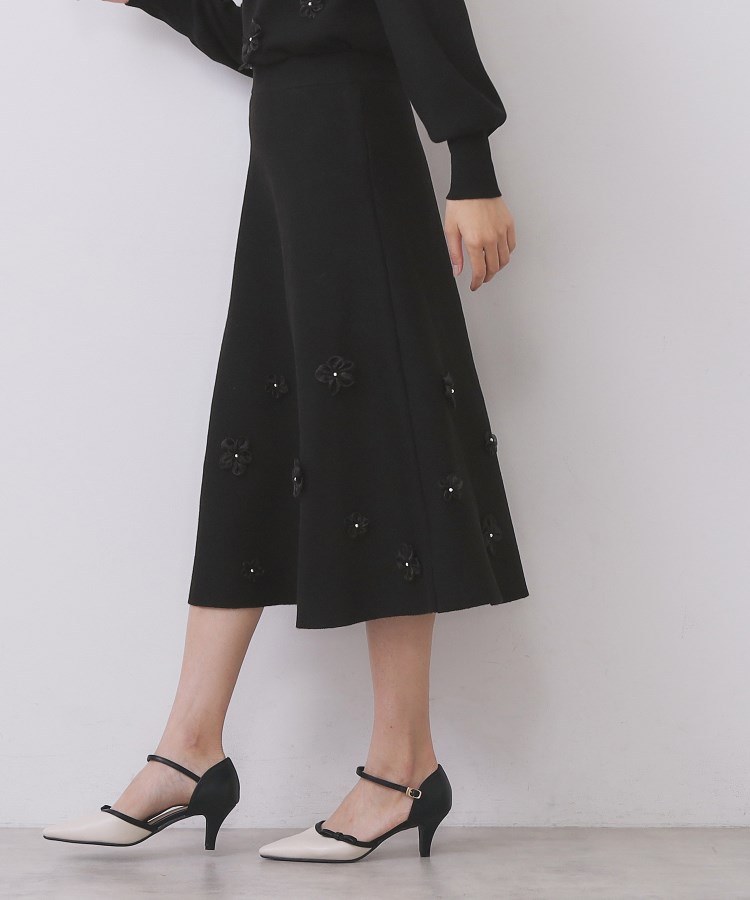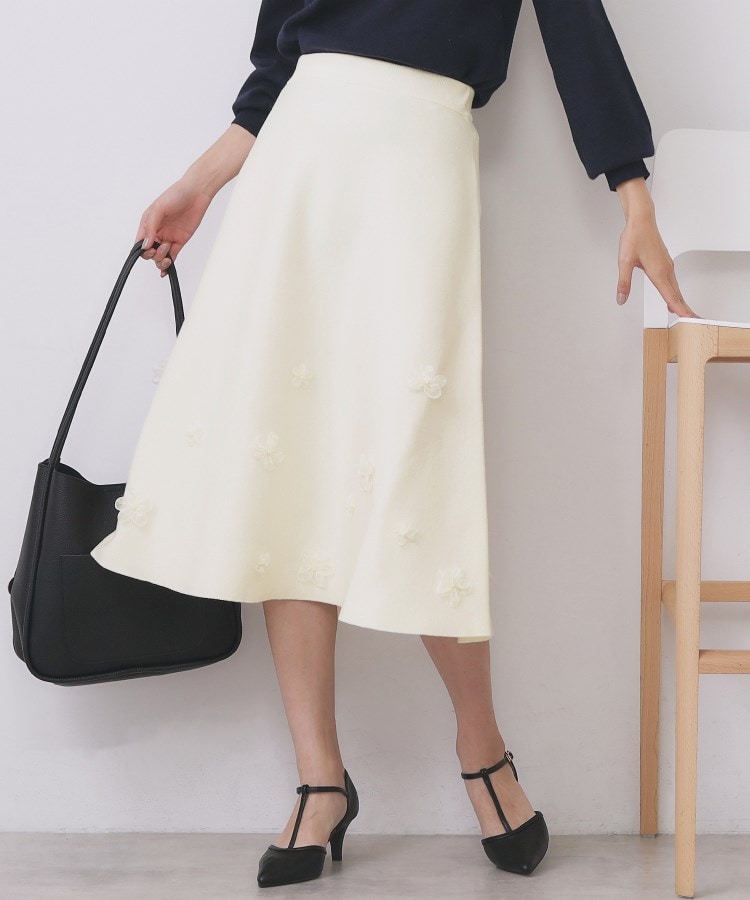 【W店限】オーガンフラワーニットフレアスカート【ハンドウォッシュOK】