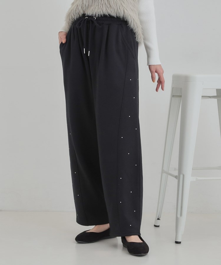 【あったか】裏起毛ストーン付きスウェットカーブパンツ