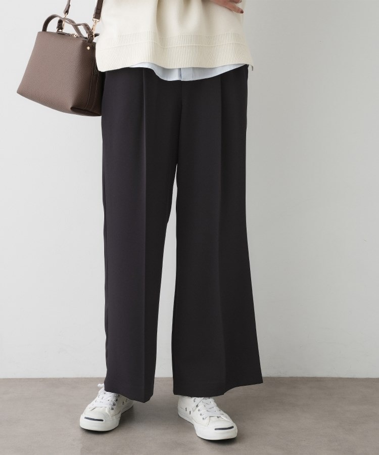 【デザインポイント】膝上から入れたフレアと程良いゆとりで美脚効果のあるフレアパンツ。今年旬のシルエットが楽しめます。【スタイリングポイント】オーバーサイズシャツやきれいめニットなどと合わせたきれいめカジュアルな着こなしがおすすめ。【素材ポイント】シワになりにくくお手入れしやすいポリエステル素材。落ち感もありながら体のラインを拾いにくい肉感がポイント。【仕様】・ポケット数:横×2 後ろ飾りポケット×2・ウエスト後ろゴム・裏地あり※照明の関係により、実際よりも色味が違って見える場合があります。また、パソコン・スマートフォンなどの環境により、若干製品と画像のカラーが異なる場合もございます。