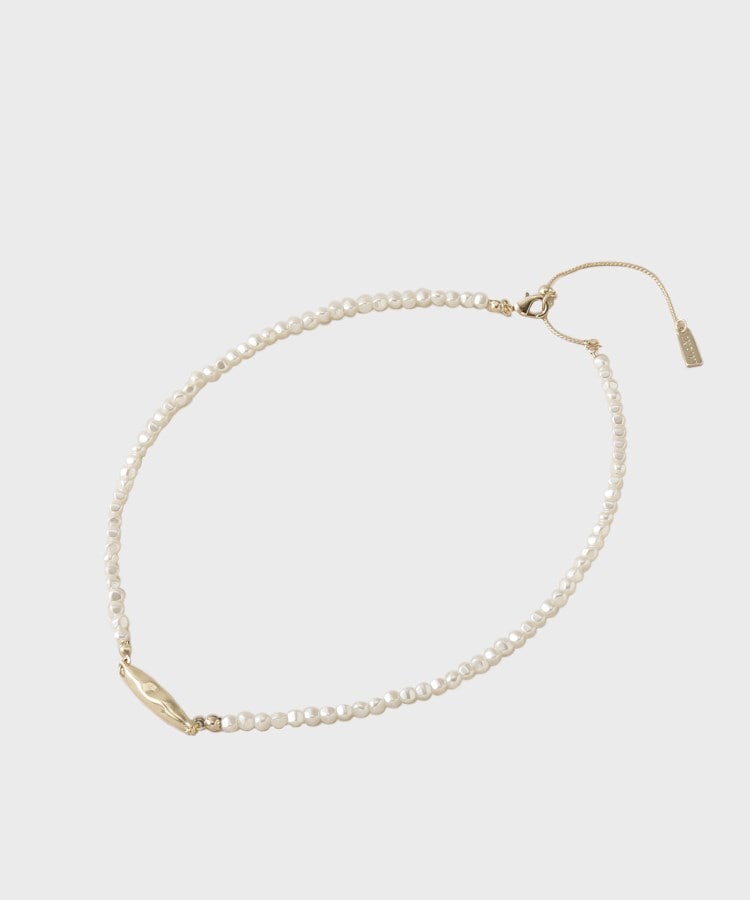 【デザインポイント】不揃いな小粒フェイクパールとメタルトップの組み合わせがこなれ感たっぷりなショートネックレスです。抜け感を意識したカジュアルな装いにもマッチするデザインに仕上げています。アジャスターはフリーで微調整が可能な仕様です。【スタイリングポイント】ニットに合わせても存在感が光ります。デイリー使いはもちろん、イベントシーズンやセレモニーにもお顔周りを華やかにしてくれます。※照明の関係により、実際よりも色味が違って見える場合があります。また、パソコン・スマートフォンなどの環境により、若干製品と画像のカラーが異なる場合もございます。