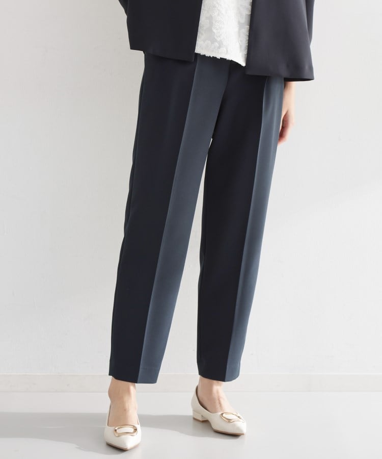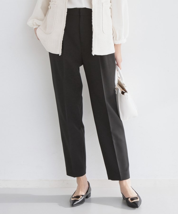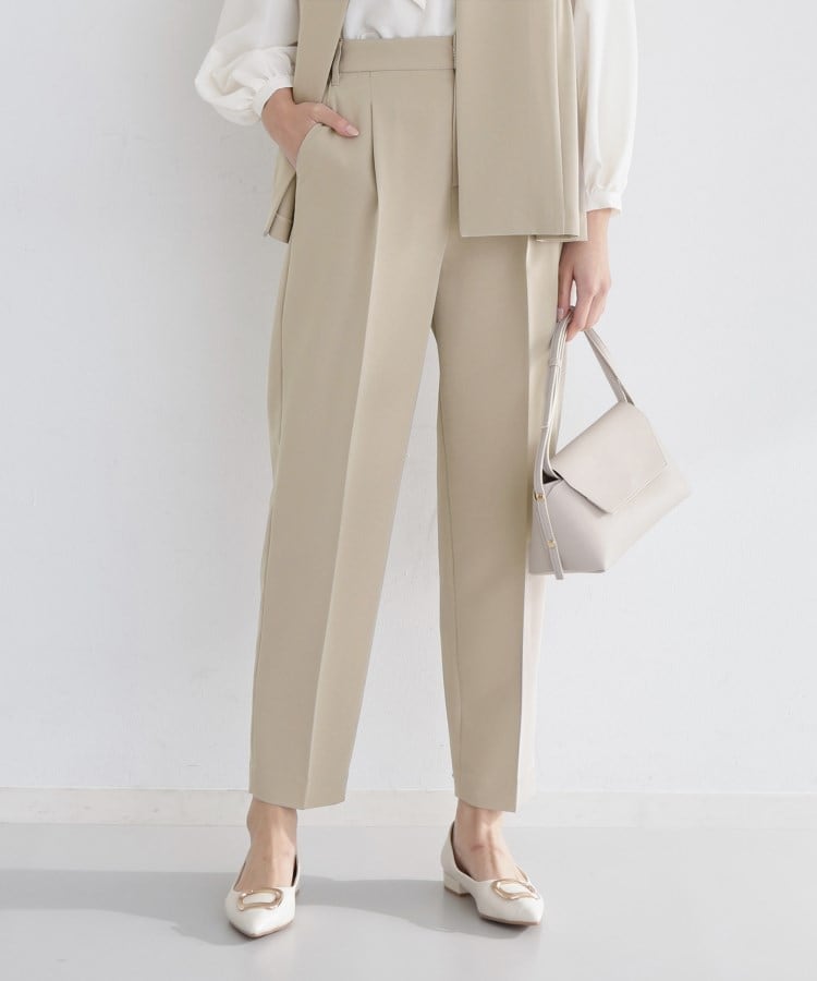 【デザイン&シルエット】Wクロスの柔らかくしなやかな素材を使用したこのパンツは、テーパードシルエットで足首まですっきり伸びるキレイなラインが特長です。センタープレスが効いたディテールと、前開きファスナー仕様により、ウエストやヒップ周りに無駄なギャザーを作らず、スタイリッシュに着こなせます。ウエストの後ろにはゴムが配されているため、着用中も楽にフィットします。【素材&機能】マシンウォッシュ、イージーケア、防汚加工が施された高機能Wクロス素材を採用。しなやかで軽やかな着心地ながら、耐久性やお手入れのしやすさを両立。シンプルながらも、どんなボトムスとも好相性なパンツです。【セットアップ&着こなしポイント】このパンツは、ブラウスやニットなど、幅広いデザインのトップスと相性が良く、オフィスカジュアルからフォーマルシーンまで自在にコーディネート可能です。さらに、040‐45003(Wクロスノーカラージャケット)や040‐25001(Wクロスペプラムジレ)とのセットアップで着用することで、統一感ある洗練されたスタイルが完成し、入学式、卒業式、オフィスシーンなど、特別な日にもおすすめのアイテムです。【仕様】・ポケット数:横×2 後ろ×2・前ファスナー・ウエスト後ろゴム・裏地なし※照明の関係により、実際よりも色味が違って見える場合があります。また、パソコン・スマートフォンなどの環境により、若干製品と画像のカラーが異なる場合もございます。