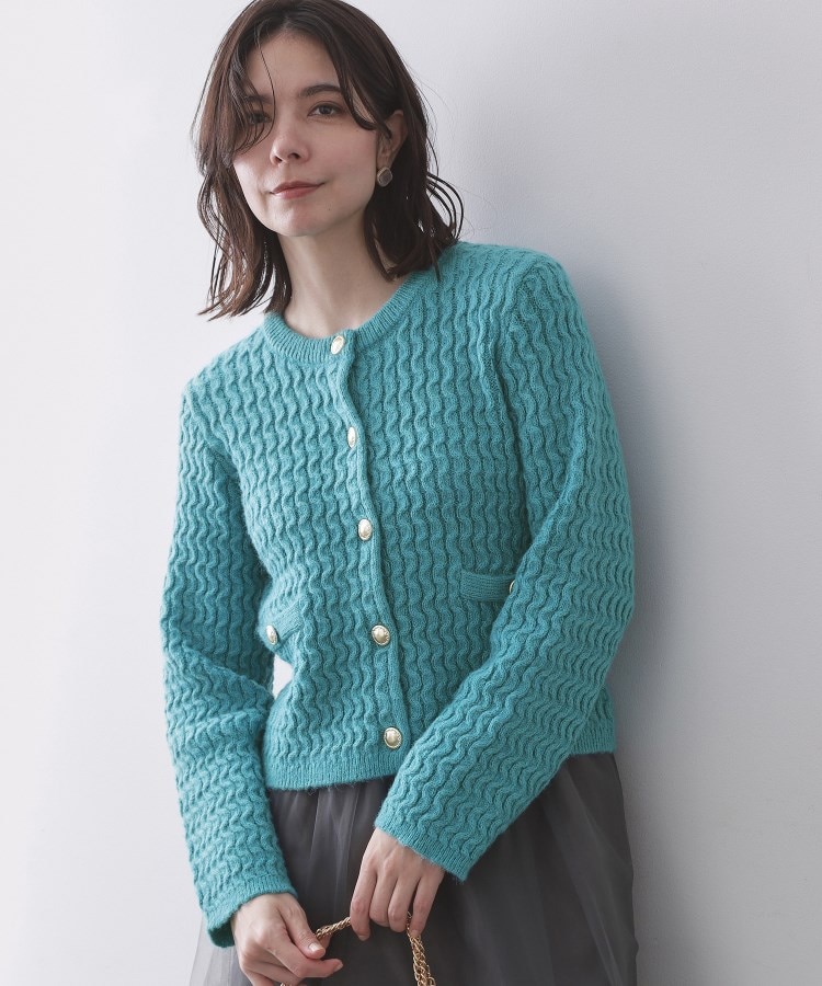 モヘヤタッチケーブル金ボタンカーディガン【洗濯機OK】