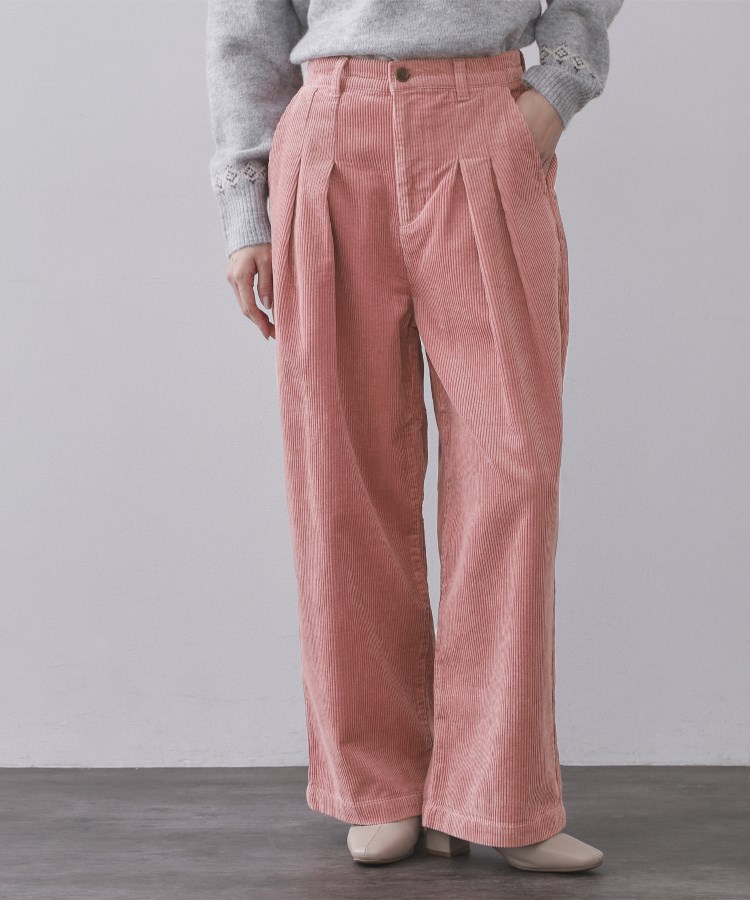 秋冬のカジュアルトレンドスタイルにぴったり!カラーコーデュロイのタックワイドパンツ【デザイン】・やや太畝のコーデュロイを使用した2タックワイドパンツ。・腰の位置を高く見せるややハイウエストの設計。・2タックデザインの表情とワイドシルエットが魅力。・冬らしいアイボリーとピンクのカラーリングもポイント。・ニットとのコーディネイトにぴったりのコーデュロイパンツです。【素材】・綿のやや太畝コーデュロイを使用。・滑らかな肌触りとコーデュロイの起毛感が特徴。・ワンウォッシュ加工・マシンウォッシャブルでご自宅でのお洗濯が可能。【仕様】・前ポケット×2、後ろ飾りポケット×2・前ファスナー・裏地なし------------------【C(シー) OPAQUE.CLIP】「PLAYFUL FEMININE」をキーワードに、天然素材と美しくポジティブなカラー、ワクワクするようなディティールや、ミックス感のあるスタイルなどファッションの楽しさを詰め込んだ新レーベルです※照明の関係により、実際よりも色味が違って見える場合があります。また、パソコン・スマートフォンなどの環境により、若干製品と画像のカラーが異なる場合もございます。