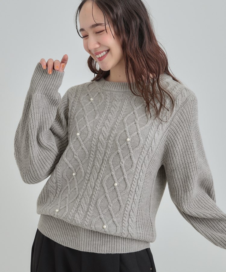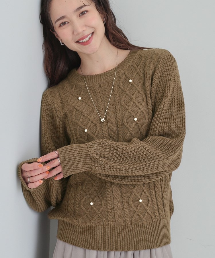 フェイクパールで上品見え ケーブルパール調ニット