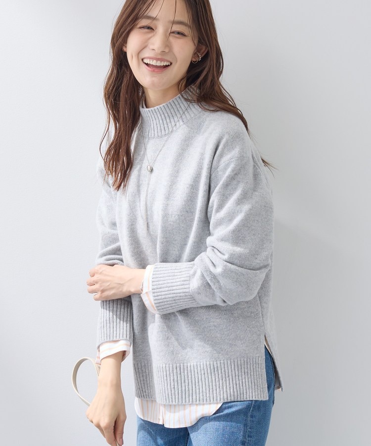 【デザインポイント】ウールにカシミヤをブレンドした、柔らかく良質な風合いのミドルゲージニット。程よくゆとりのあるハイネックは窮屈感がなく、首まわりをすっきりと演出します。ヒップまでカバーする安心の着丈で、体型を選ばずバランス良く着こなせる一枚です。【スタイリングポイント】裾からカットソーインナーをレイヤードすれば、いつものコーデに奥行きとこなれ感をプラスできておすすめです。細身のパンツはもちろん、ワイドパンツやスカートとも相性がよく、シルエットを気にせず幅広いスタイリングが楽しめます。【素材ポイント】非常に繊細なウールにカシミヤとナイロンを混紡した紡毛糸です。特殊な紡績方法により、糸の中に空気を取り込むことで、非常に軽くスポンジッシュな風合いが特徴で暖かさも備えています。また、カシミヤをブレンドすることにより、滑らかで優しい風合い持ち合わせています。※照明の関係により、実際よりも色味が違って見える場合があります。また、パソコン・スマートフォンなどの環境により、若干製品と画像のカラーが異なる場合もございます。