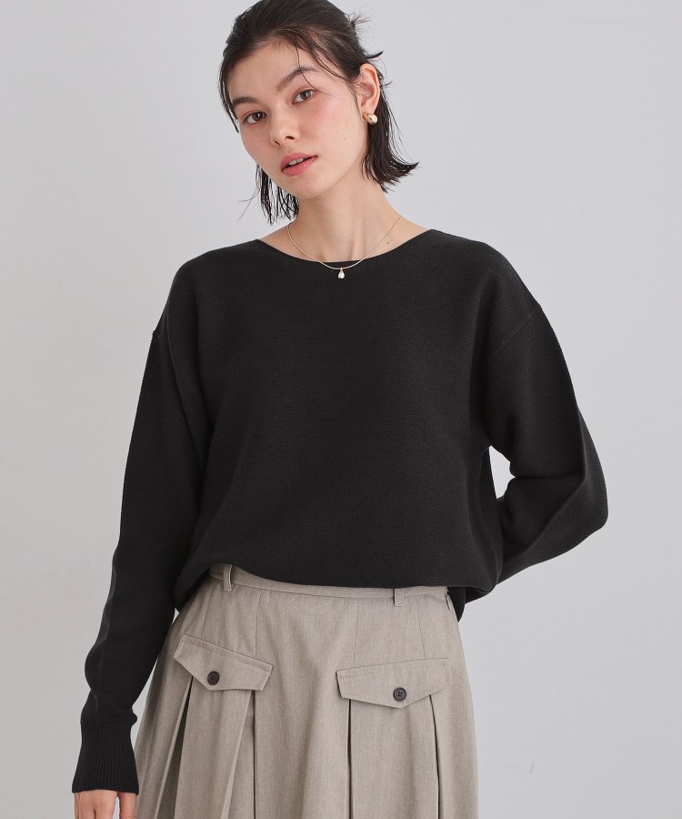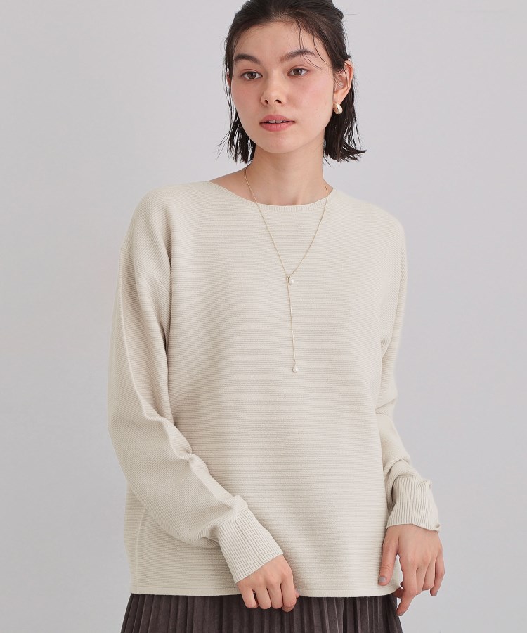 ■ポイント/詳細上品なネックラインとゆったりシルエットで美人見えが叶う一着。ボートネック仕様で衿元が美しく、ドロップショルダーにより肩周りにゆとりがありながら、きちんとした印象が際立つ一着です。ガーター編みの表情豊かな編地が特徴で、シンプルながらも個性的なアクセントを加えています。■素材/機能性洗濯機でお手入れが可能なため日常使いに最適です。さらに蓄熱機能により、冬場でも暖かく着用できるのも魅力。■おすすめスタイリングオフィスカジュアルからリラックスしたい休日コーデまで幅広いシーンで活躍します。シンプルなデザインなので、パンツやスカートとの組み合わせも自在。冬から春先まで長く愛用いただけるアイテムです。※照明の関係により、実際よりも色味が違って見える場合があります。また、パソコン・スマートフォンなどの環境により、若干製品と画像のカラーが異なる場合もございます。
