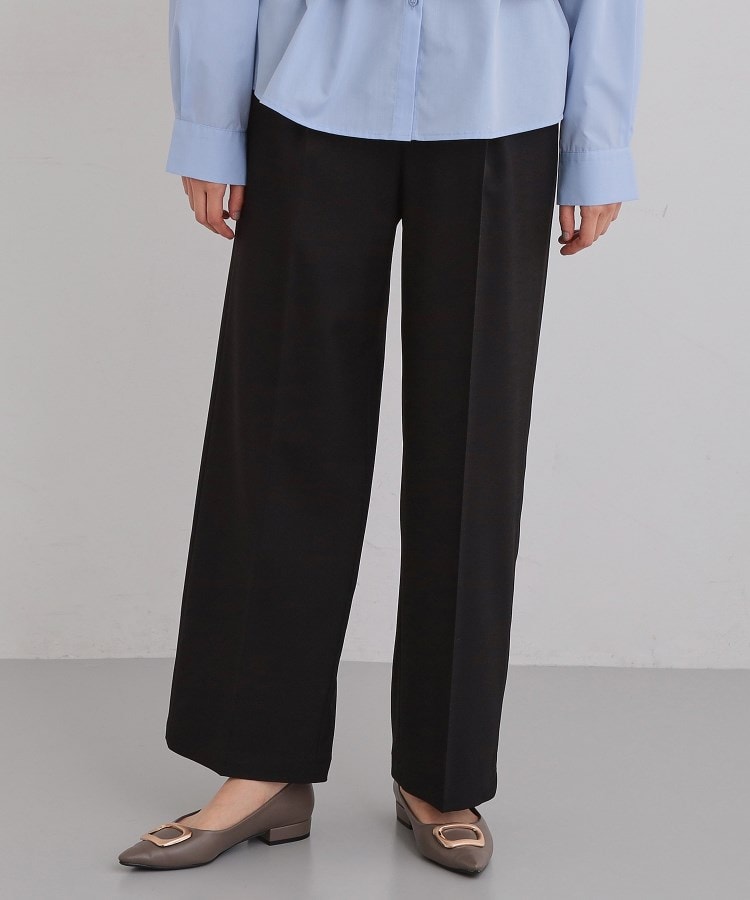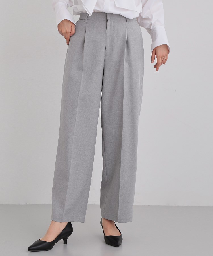 【デザイン】すっきり見えが魅力のワイドパンツは、センタープレスで縦ラインを強調し、上品に見える仕立てでお仕事シーンに馴染む端正な一本です。フロントがファスナー開き仕様になっており、ヒップからウエストにかけてのホールド感でシルエットを美しく保ちながら、ウエストの後ろはゴム仕様になっていて動きやすさも確保しております。また、シャークスキン素材を使用しているので上品さがあり、カジュアルからフォーマルまで幅広いシーンで活躍できます。【素材】環境に優しい素材を使用しております。ご自宅で洗濯機洗いが可能です。※494カラーは手洗い可【スタイリング】春ニットやシンプルなブラウス、またはTシャツなどとのコーディネートがおすすめです。シューズはヒールを合わせるとさらにスタイルアップが期待できます。#012杢グレー#019ブラック#051ライトベージュの3色は同素材の040-25005とセットアップでも合わせていただけます。【仕様】・ポケット数:横×2 後ろ×2・前ファスナー・ウエスト後ろゴム・裏地なし※ライトベージュ(051)はやや透け感があるため、インナーの着用をおすすめします。※照明の関係により、実際よりも色味が違って見える場合があります。また、パソコン・スマートフォンなどの環境により、若干製品と画像のカラーが異なる場合もございます。