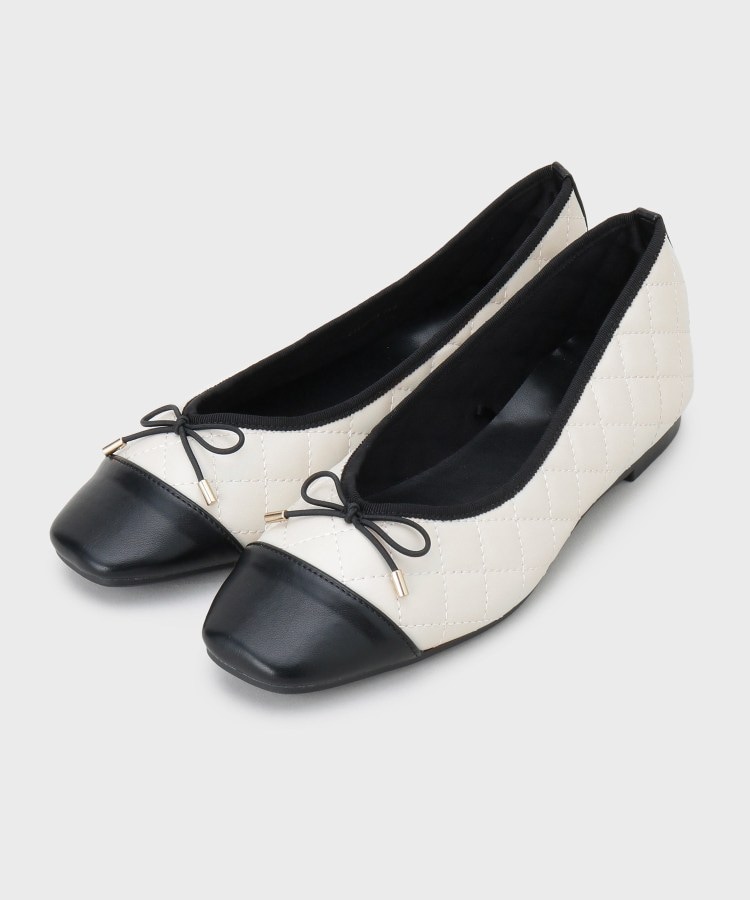 累計販売数10万足以上!履き心地柔らかな「名品」フラットバレエシューズ 春夏にもぴったりの柄やカラーが登場!・甲を深めにデザインしたスクエアトゥのバレエシューズ・通勤にも通学にも対応可能なきれいめシンプルデザイン・履き口のVカットデザインで足元のすっきり見えが叶います・中敷きには低反発スポンジを使用し、かかと部分は馬蹄型のクッション仕様で足裏にフィット感をプラス・内側部分はジャージ素材を使用して足当たり良好・ソール部分はラバー素材使用で滑りにくい仕様に【カラー展開】#019ブラック系:しわエナメル合皮生地#107ゴールド系:メタリック合皮生地#209シルバーブラック系:ガンメタリックラメ生地#504アイボリー系:キルティング生地【デザイン】通勤通学のキレイめスタイリングに合わせやすいスッキリしたデザインのバレエシューズ。グログランのパイピングとリボン先のメタルパーツがさりげないデザインポイントです。リボンデザインでほんのり甘さを残しつつ、大人っぽく使えるアイテム。デニムなどのカジュアルコーデはもちろん、スカートスタイルで甘めコーデの日も合わせやすく、幅広いスタイリングが楽しめます。ソックスを合わせたスタイリングもおすすめです。■バレエシューズ■ぺたんこ靴■フラットシューズ※照明の関係により、実際よりも色味が違って見える場合があります。また、パソコン・スマートフォンなどの環境により、若干製品と画像のカラーが異なる場合もございます。