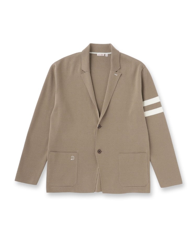 《様々なシーンで活躍するニットジャケット》●しっかりとした生地感で型崩れしにくい●ライトアウターとしても活躍●流行に流されないベーシックなシルエット●どんなスタイルにも合わせやすいデザイン●こだわり細部のデザインにも徹底的にこだわっています。袖口の配色ライン、ポケットにあしらったブランドイニシャルの刺繍、そしてオリジナルのロゴ入りボタンなど、細部にまでこだわりが光ります。これらのディテールが組み合わさり、他では手に入らない唯一無二の個性を演出します。伝統的なテーラードジャケットのデザインを取り入れたニットのため、オフィスでのキレイめスタイルから休日のカジュアルスタイルまで、幅広い着こなしに対応します。●素材素材は、「サイロスパンコンパクト」という特殊な紡績技術により、繊維の毛羽立ちを極限まで抑えた、良質な光沢感のある糸を採用しています。肌触りは極めて滑らかで、上品な艶めきが洗練された印象を与えます。編地は、軽さを保ちつつ適度なハリ感を出すミラノリブ組織を採用。これにより、ニット特有の快適な着心地ときちんとしたジャケットらしい佇まいを実現しました。※照明の関係により、実際よりも色味が違って見える場合があります。また、パソコン・スマートフォンなどの環境により、若干製品と画像のカラーが異なる場合もございます。