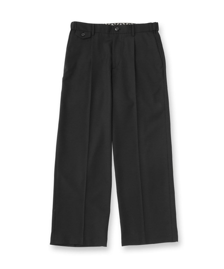 《まさかの「洗える」ウールブレンド!そして消えにくいセンタープレス!ヘビロテ確定のイージースラックス!》●ご自宅で洗濯可能なウォッシャブルウールブレンド●毛羽立ちを抑えた良質なツイル素材●特殊加工によりセンタープレスが持続●緻密なパターン設計による美脚シルエット●こだわりシルエットを追求した、ワンタックセミワイドの洗練されたシルエットです。穿くだけで脚をすらっと長く見せる美脚効果が期待できます。ワイドフィットのため、O脚やX脚など脚のラインが目立つのを気にされる方にもおすすめです。センタークリース(折り目)が入った本格的なスラックスの外観を保ちつつ、サイドウエストにはシャーリングゴムを使用し、リラックス感のある穿き心地です。内側にはドローコード(スピンドル)も内蔵されているため、ベルトなしでも快適に着用いただけます。●素材素材には、クリアな肌触りで良質感のあるウールとポリエステルの混紡TWツイル素材を使用。ウールの持つ上品さを保ちながら、「ウォッシャブル(自宅で洗える)」機能を実現しました。毛羽立ちが少ない表面は肌触りが滑らかで、さらりと気持ちよく着用できます。シャツなどのきれいめアイテムはもちろん、Tシャツ一枚のカジュアルスタイルに上品さを加える「ハズし」としても活躍します。同素材のブルゾンを合わせたセットアップスタイルもおすすめ。ブルゾン品番:086-55002※照明の関係により、実際よりも色味が違って見える場合があります。また、パソコン・スマートフォンなどの環境により、若干製品と画像のカラーが異なる場合もございます。