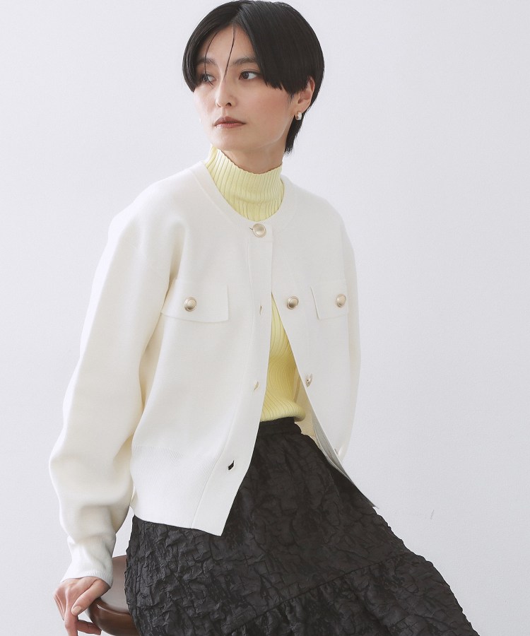 フラップポケット金ボタンニットカーディガン【洗濯機OK】