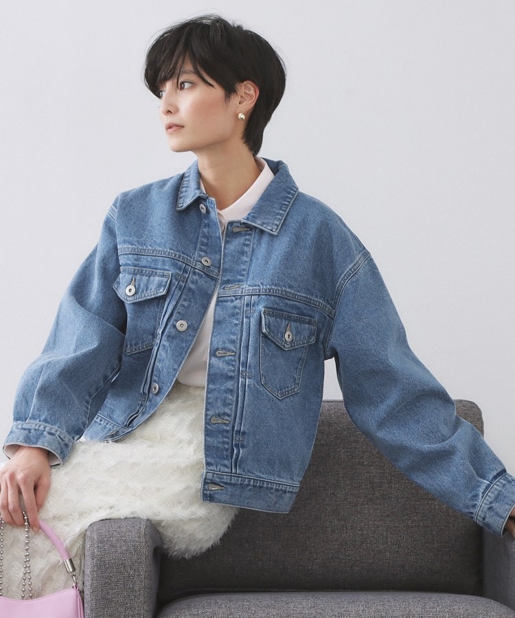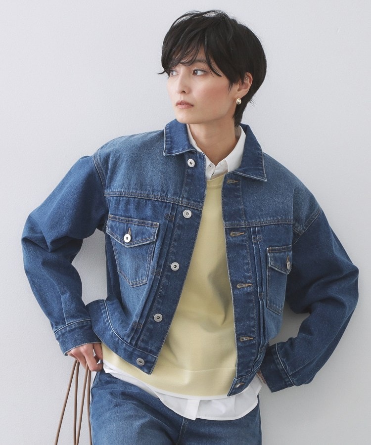 カジュアルスタイルに着まわしやすいデニムジャケット【デザイン】・本格的な仕様、素材にこだわった2ndタイプのデニムジャケット。・コンパクト過ぎず、今っぽいバランスで着られるデザイン。・ボトムもデニムで合わせたデニムonデニムのスタイリングや、ボウタイブラウスなどフェミニンなアイテムと合わせたMIXスタイルもおすすめです。・同素材でストレートパンツ(637-65012)の展開あり。【素材】・12.5OZ(オンス)の本格的な綿100%デニム使用。・さりげない加工感で、きれいめな仕上がりもポイントです。【仕様】・ポケット数:前×2・裏地なし※照明の関係により、実際よりも色味が違って見える場合があります。また、パソコン・スマートフォンなどの環境により、若干製品と画像のカラーが異なる場合もございます。