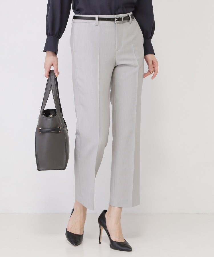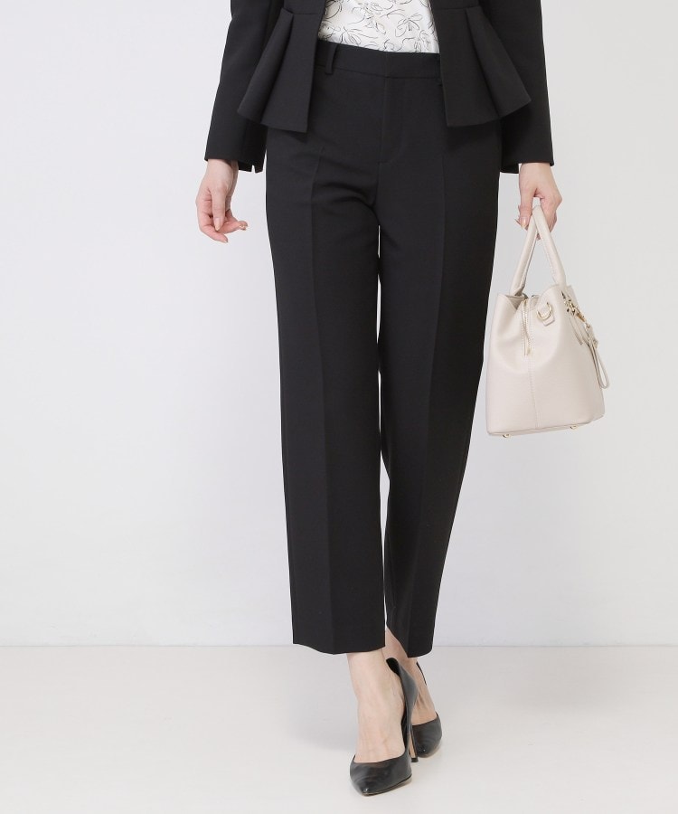 〇デザインポイントストレートシルエットのパンツです。ダーツを無くしおなか回りをスッキリとさせています。センタープレスを入れたキレイ目に仕上げています。同素材でノーカラージャケット(品番187-45105)、スカート(品番187-75105)も展開していますのでセットアップとして着用して頂けます。〇素材ポイントポリエステルを使用したサスティナブル素材です。【仕様】・ポケット数:横×2 後ろ飾りポケット×2・前ファスナー・裏地なし※こちらの商品はやや透け感があるため、インナーの着用をおすすめします。※照明の関係により、実際よりも色味が違って見える場合があります。また、パソコン・スマートフォンなどの環境により、若干製品と画像のカラーが異なる場合もございます。