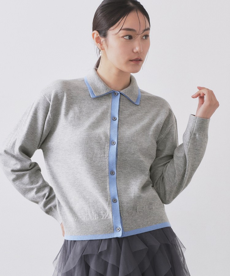 ダブルカラーポロ衿配色ニット【洗濯機OK】