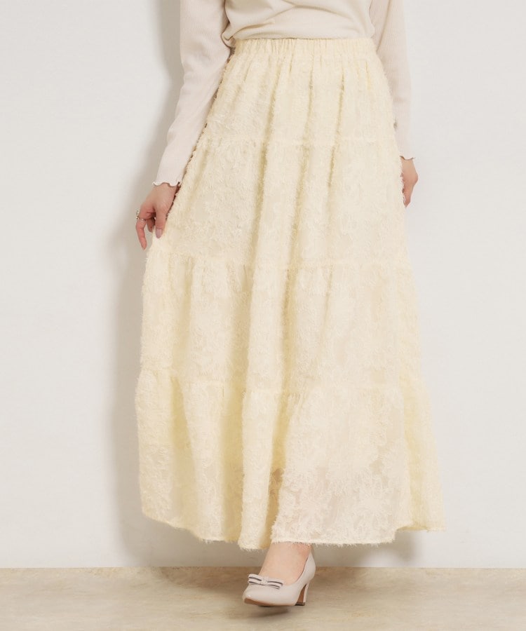 【デザイン】フラワーモチーフのレースがフェミニンさをプラスするティアードスカート。歩くたびに上品に揺れるシルエットも魅力的。同素材の85047とsetupも可能。■サイズ表示について※バイイング商品のため下げ札サイズ表記とワールドサイズ表記が異なります。製品寸法をご確認くださいませ。ワールドサイズコード38=製品サイズ表記M【仕様】・ポケットなし・ウエスト総ゴム・裏地あり※アイボリー(004)はやや透け感があります。※照明の関係により、実際よりも色味が違って見える場合があります。また、パソコン・スマートフォンなどの環境により、若干製品と画像のカラーが異なる場合もございます。