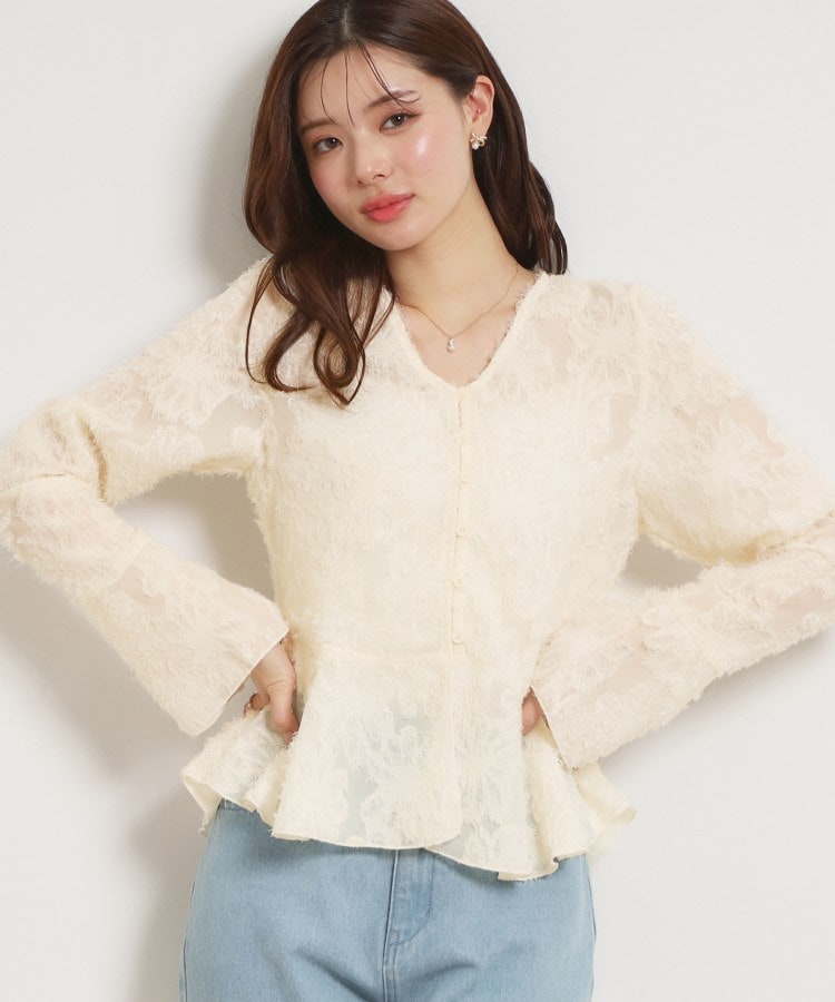 ペプラムフラワーモチーフブラウス