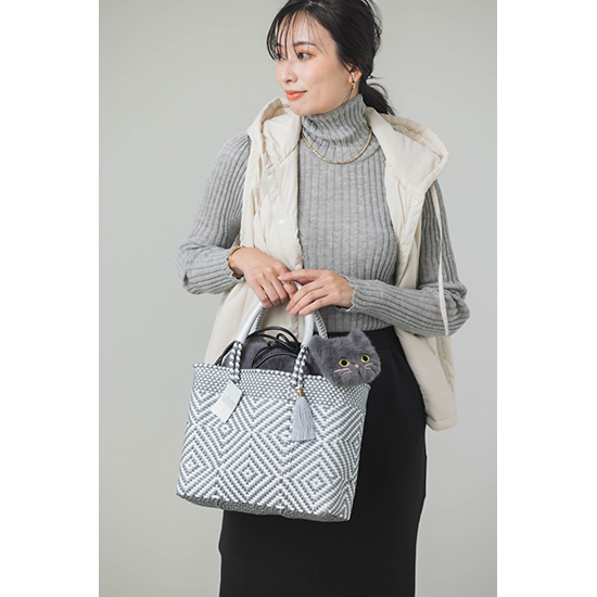 <p><font color=#c31941 size=3>夏だけでなく秋冬だってオシャレに持てるメルカドバッグ</font><br><br>世界各国のセレクトショップで取り扱われ、今や、夏場だけでなく一年中お楽しみいただけるメルカドバッグです。汚れても水拭きできるのも魅力。<br>サイズ感も大きすぎず程良い上品なサイズ感です。内布にはポケットがあったり、開閉部分はマグネット仕様だったりと、機能的にも優れております。<br>シックなブラック×ベージュ柄と、冬のコーディネートに明るい差し色になるシルバーグレー系の2色展開です。<br><br>※着用モデル 162㎝<br><br>■バイヤー・利根川リカコ profile<br>60代、2児の母。ABAHOUSEにてコーディネーター、インポートバイヤーとして関わる。<br>その後、雑誌STORY、HERSなどのライター、モデルを経て、現在HERS CLOSET、kokodePLUSのバイイングに携わる。<br>30代の頃から一貫してブラックコーデが好き。</p>
