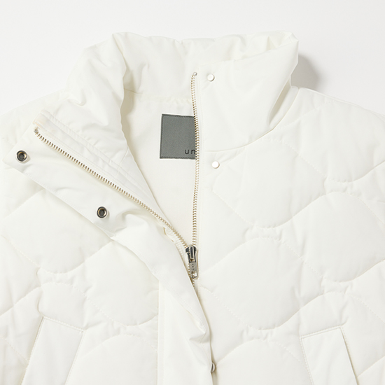 マットな光沢感のタフタ素材を使用したキルティングのジレ