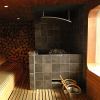水着で入る男女共用のセルフロウリュ付きサウナに入ったあとは、中庭のプールで”ととのえ”て。