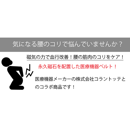 磁気の力で結構改善!腰の筋肉のコリをケア! 永久磁石を配置した医療機器ベルト。