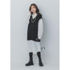 <p><font color=#c31941 size=3>シャツとニットをレイヤードしたように見えるコンビネーションデザインのワンピース。</font><br><br>一枚でコーディネートが完成し、リラックス感のあるシルエットと異素材のコントラストがモードな印象を引き立てます。<br>ストッキングとショートブーツでキレイ目に。レギンスにパンプスやローファーでカジュアルダウンにもできる、1枚でオシャレを多岐に楽しめるワンピースです。</p><br><br>