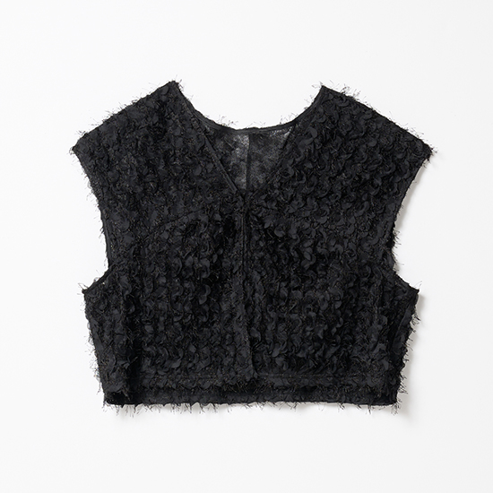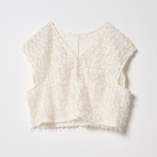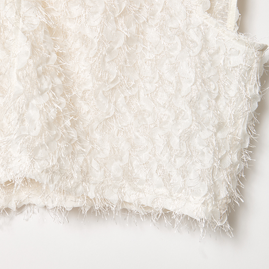 ボレロにはテープヤーンとフリンジを組み合わせた