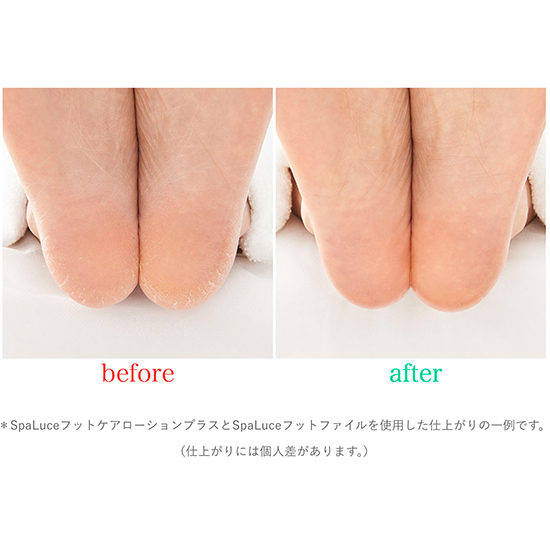 ①フットケアローションプラスをスプレー後、専用のフットファイルで週1回程度硬くなった足裏をなめらかに整えてください。