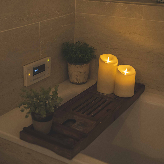 ルミナラアウトドアピラーは、炎のゆらぎをリアルに再現し本物のような演出を屋外で可能にしたキャンドル型LEDライトです。内部に水や埃が入りにくい構造にし、周囲をABS樹脂で成型したため、デッキやテラス、ガーデンの植え込みなど使用範囲が広まりました。タイマーやリモコン機能を活用して、ON/OFFをコントロールできます。