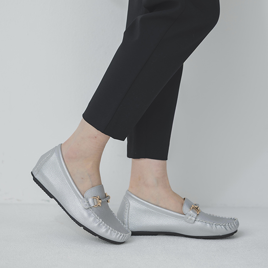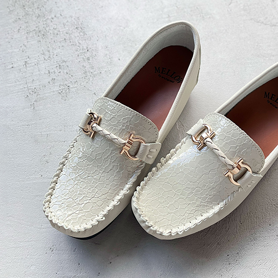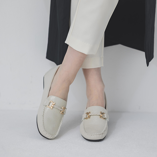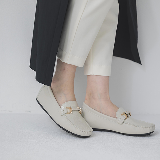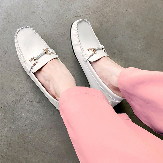 編み込みホースビットが優しい存在感を与えるインヒールモカシン