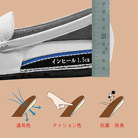 さらにインヒールで脚長効果、長時間履いても疲れにくい、
