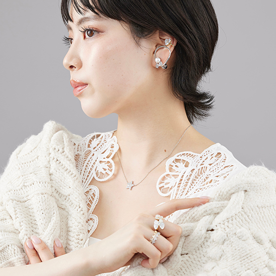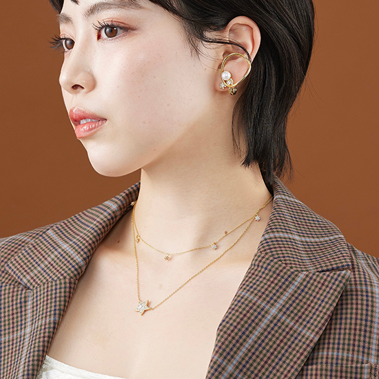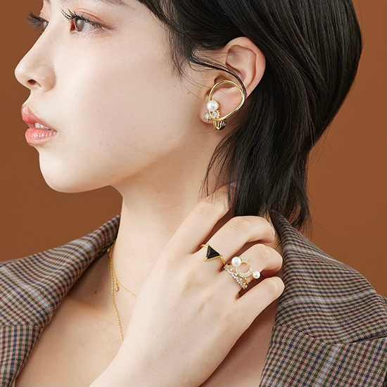 イヤリングでもピアスでもない“新しい“イヤリングカフ”というアイテムが、スタイリングに自由な発想をもたらす一点。