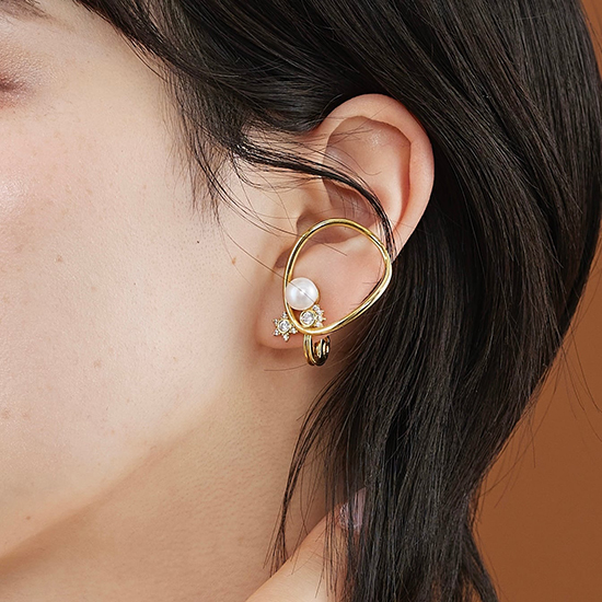 安定感のあるイヤーカフというコンセプトで造られたイヤリングカフは、お耳の付けたい箇所に自由な発想で着用することができます。