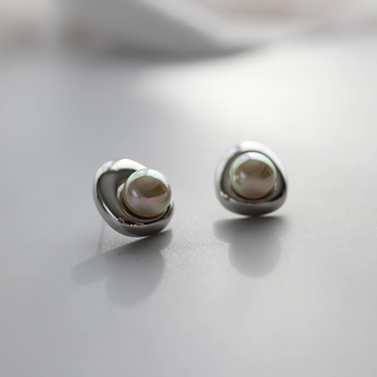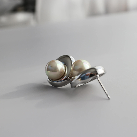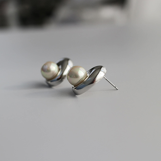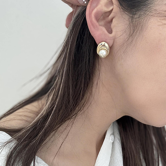丸みのあるメタルフォルムに、そっと浮かぶように収まるパールが印象的です。