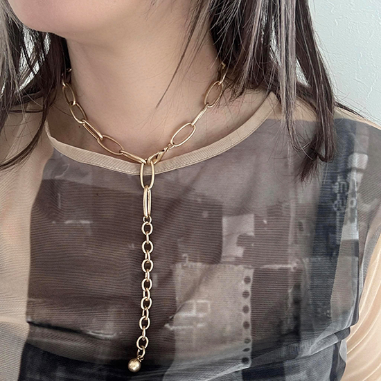 もちろん後ろに回してベーシックなチェーンネックレスとしても着用可能。