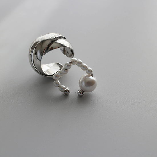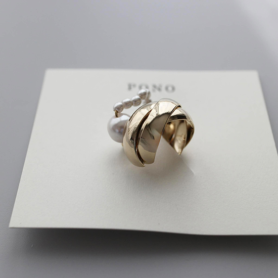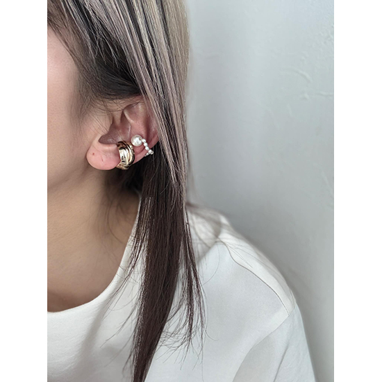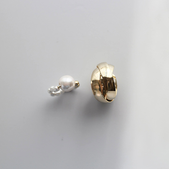 重さのあるフォルムと、抜け感のあるパールをセットにしたイヤカフ。