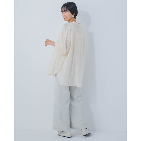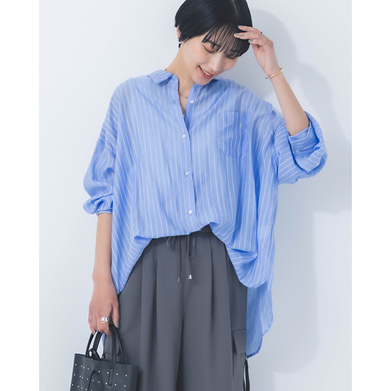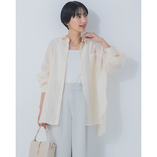 <p><font color=#c31941 size=3>【 Feminine / Casual / Relax 】<br>いつも自然体でしなやかな自分でいたい女性へ<br>日常を少しだけSpecialに彩るリアルクローズを提案するACUTA( アクータ )</font><br><br>程よい落ち感のあるシアーストライプ生地を使用した2Wayシャツ。<br><br>凹凸のあるダブルストライプの生地は、肌との接触も軽やかで春夏シーズンにピッタリです。<br><br>袖口カフスの調整を可能にしたり、前ボタンの裏に設置したスナップボタンで2段階に着丈を調整できたりと<br>見た目だけでは分からない、万能なデザインシャツに仕上げています。<br><br>合わせるボトムや、シーンや気分によって、自分らしい着こなしが楽しめる一着です。<br><br>手洗い可能<br><br>モデル身長166cm</p>