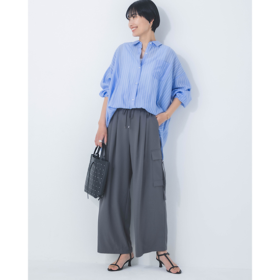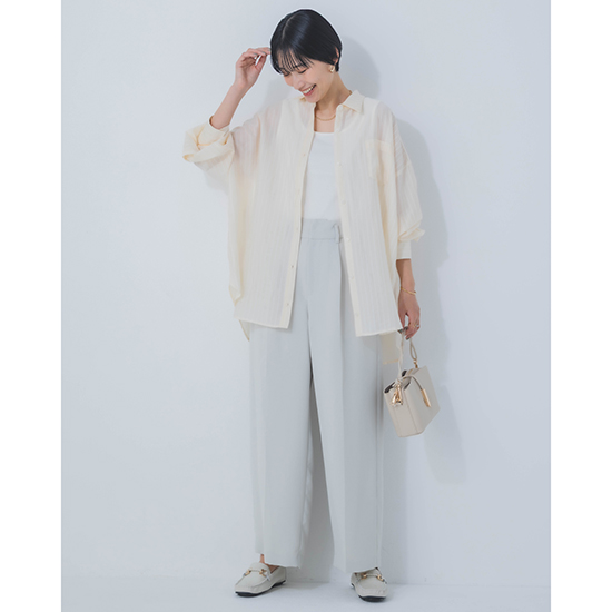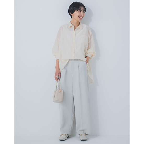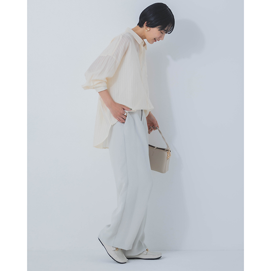 合わせるボトムや、シーンや気分によって、自分らしい着こなしが楽しめる一着です。