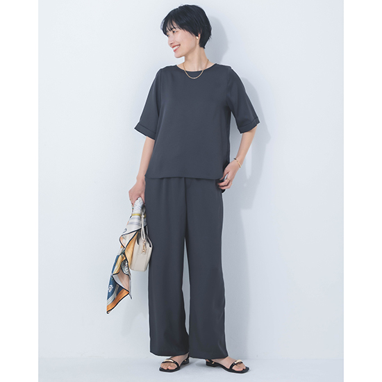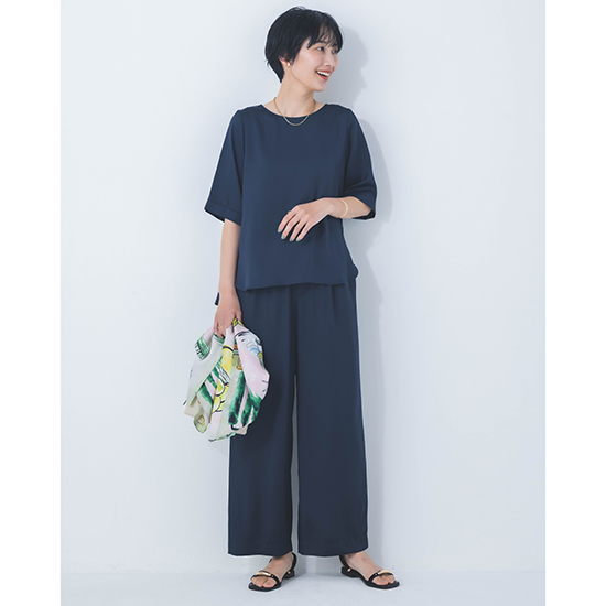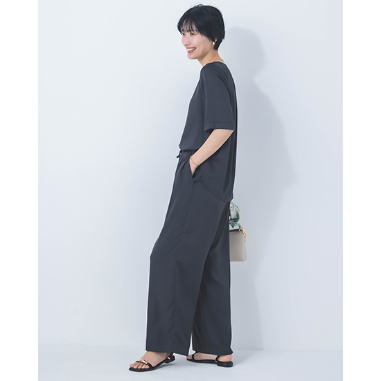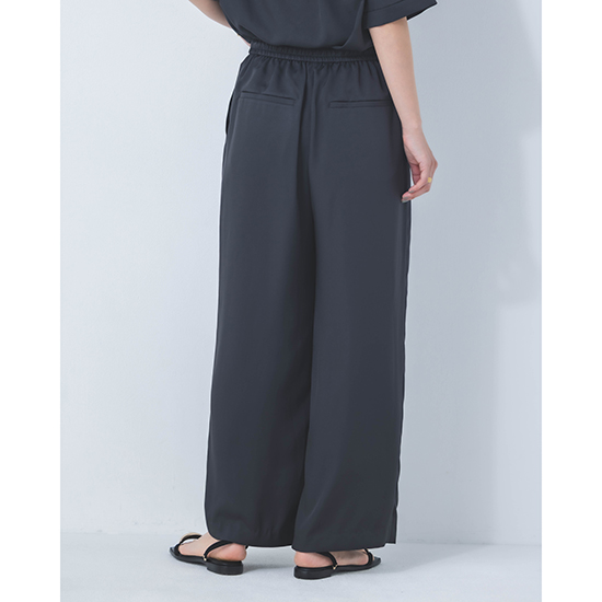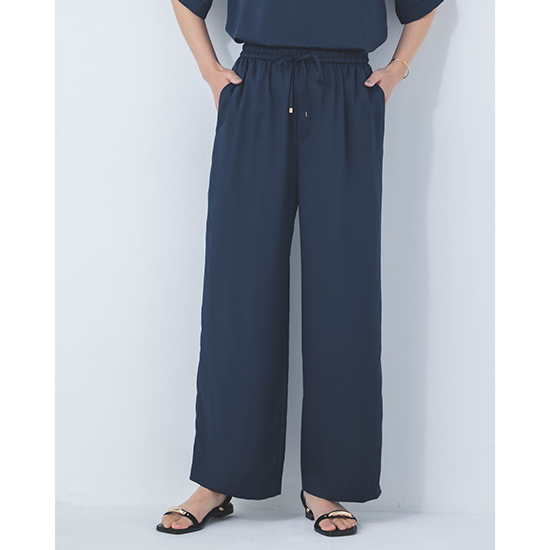 <p><font color=#c31941 size=3>高機能性と美シルエットで、ファンの多いDONEEYUのセットアップ<br>ワイド過ぎず、細身すぎない絶妙な美シルエットパンツ</font><br><br>オール日本製で、高いデザイン性と上質な素材に縫製が魅力の「DONEEYU(ドニーユ)」。<br><br>高機能性と美シルエットで、ファンの多いDONEEYUのセットアップのワイドストレートパンツ。<br><br>ビンテージ加工をすることで、ナチュラル感のあるシルクのような風合いが魅力のサテンツィル素材を使用した新作。<br><br>見た目以上の軽さと、上品な光沢感が魅力で、お仕事から休日、旅行まで様々なシーンで愛用できます。<br>また、合わせるアクセサリーや足元によってはオケージョンまでこなせる万能力。<br><br>ワイド過ぎず、細身すぎない絶妙な美シルエットパンツは、日々の救世主になること間違いなし。<br>ウエスト総ゴム仕上げでも、お腹周りもスッキリ見せてくれ、ドロストコードの先の金具もポイント。<br><br>UVカット・接触冷感機能を兼ね備え、ナチュラルストレッチ感もプラス。<br>軽やかでノンストレスの着心地は、これからのシーズンに大活躍してくれるはず。<br><br>【セットアップ商品】<br><br>モデル身長166cm<br><br>※手洗い可能</p>