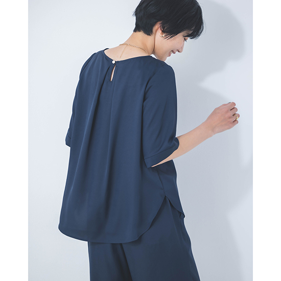 上半身をスッキリと女性らしく見せてくれる5部袖プルオーバー