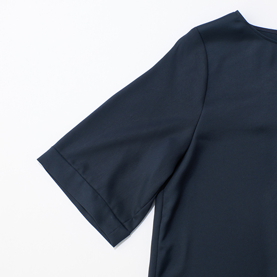 肘が見え隠れるする5部袖は、上半身をスッキリと女性らしく見せてくれ、一枚着、インナー使いと、着回し力も抜群です。