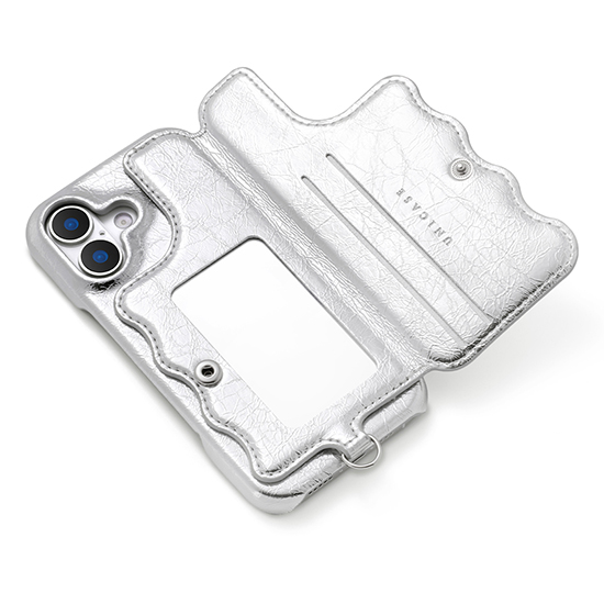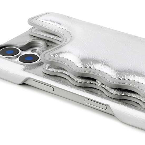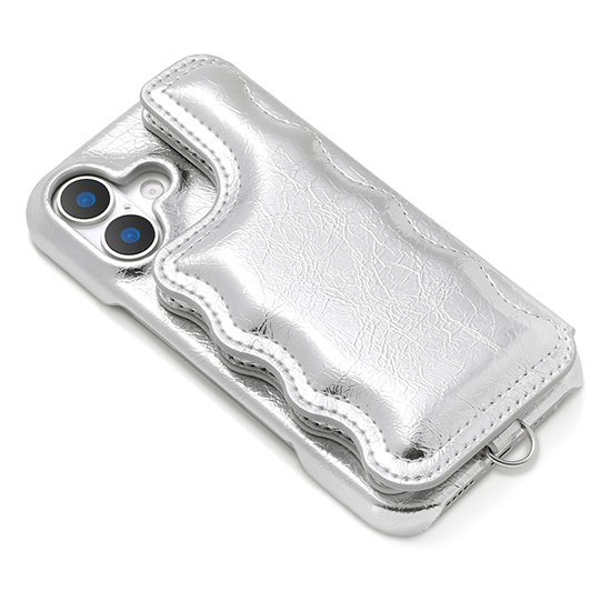 ミラー&カード収納付き|ぷっくり×なみなみデザインの大人かわいいiPhoneケース