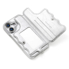 ケースの背面フラップを開くと、大きくて見やすいミラーと、ICカードやクレジットカードが入る2枚分のカード収納スペース。<br />