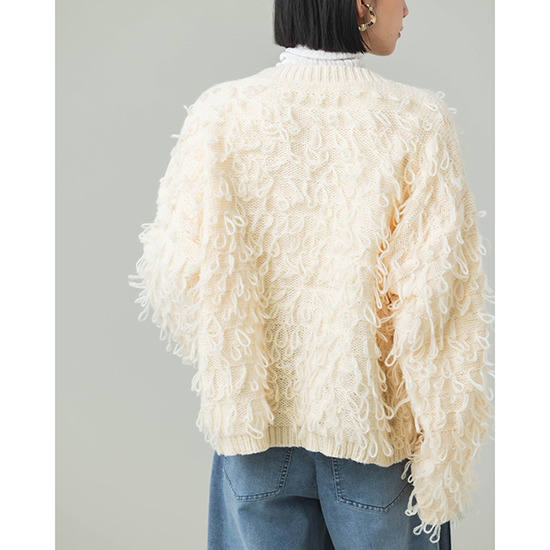 [Limue]【ウォッシャブル】ループフリンジカーディガン
