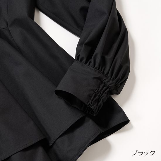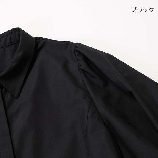 ふんわりしたボリューム袖は、カフス裏のゴム入りギャザーで丈やシルエットを調整できる仕様。