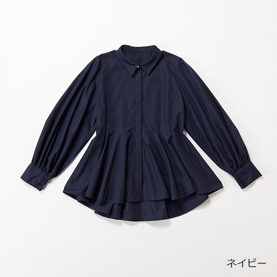 <p><font color="#c31941" size="3">知的で甘さ控えめな華やかさが叶う<br /> シャープなペプラムラインが新鮮!</font><br /> <br /> シワになりにくいハリ素材に、ふんわり広がるペプラムが知的な印象を演出。<br /> 首元の11粒パールボタンやボリューム袖が華やぎを添える、オンオフ問わず活躍の主役ブラウスです。<br /> <br /> 一見シンプルながら、着るだけで華やぐ立体的なデザインが魅力。裾に広がるペプラムデザインは、ギャザーではなく自然に広がるパターンにすることで、甘さを抑えて大人の洗練感を引き立てます。<br /> 衿付きのシャツデザインはきちんと感があり、学校行事やお仕事シーンにも対応可能。<br /> ふんわりしたボリューム袖は、カフス裏のゴム入りギャザーで丈やシルエットを調整できる仕様。<br /> ウエストインせずともサマになり、体型カバーまで叶う頼れる一枚です。<br /> 後ろはロングテールで、お尻まわりをカバー!<br /> <br /> ご自宅で水洗い可です。<br /> <br /> <img alt="green_icon_natural" src="https://data.kokode.jp/user_data/kokode/packages/default/img/green_icon/green_icon_natural.jpg" width="92/" /><img alt="green_icon_fairtrade" src="https://data.kokode.jp/user_data/kokode/packages/default/img/green_icon/green_icon_fairtrade.jpg" width="91/" /><img alt="green_icon_donation" src="https://data.kokode.jp/user_data/kokode/packages/default/img/green_icon/green_icon_donation.jpg" width="92/" /><img alt="green_icon_circulareconomy" src="https://data.kokode.jp/user_data/kokode/packages/default/img/green_icon/green_icon_circulareconomy.jpg" width="92/" /></p>