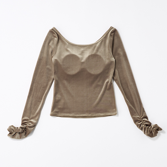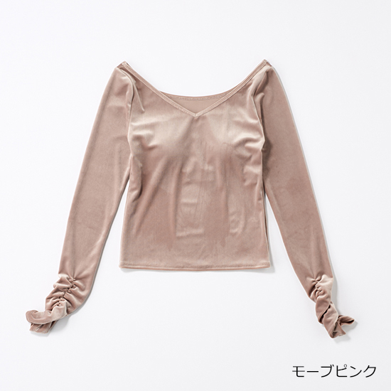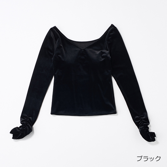 [L'AUBE BLANC]カップ付きシャープネックベロアトップス