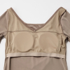 袖にはシャーリングを効かせ、ボディラインに沿うシルエットとのコントラストで立体的なバランスを形成。パッド付きの仕様で一枚でも着用可能な、洗練されたデザインです。